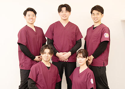 施術スタッフは全員国家資格者施術を行うスタッフは、全員厚生労働省認定の柔道整復師、鍼灸師という国家資格者となりますので、ご安心ください。